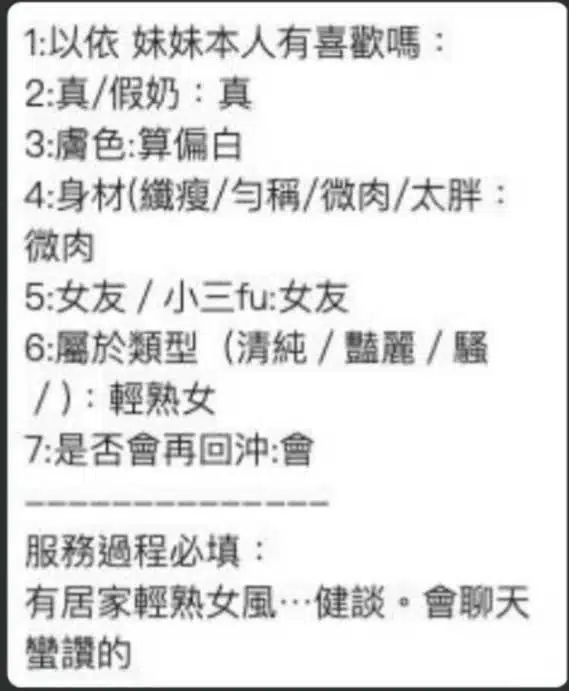 按摩,69,共浴,可親嘴,無套吹,品鮑,變裝(自備免付),玩具(按摩棒),玩具(跳蛋),情趣用品(客自備),無套做,快餐,2S