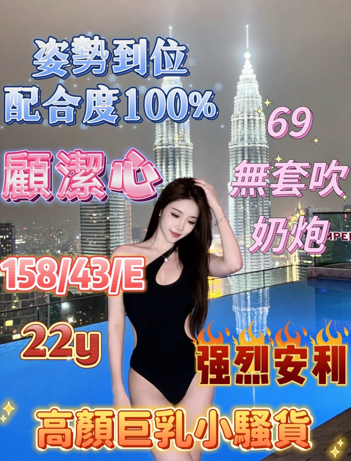 奶砲,按摩,69,殘廢澡,LG(舌吻)依氣氛衛生而定,可親嘴,無套吹,口爆,品鮑,舔蛋,奶推,冰火,顏射,變裝,絲襪,玩具(按摩棒),玩具(跳蛋),自慰秀,中文溝通,快餐,2S