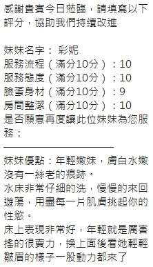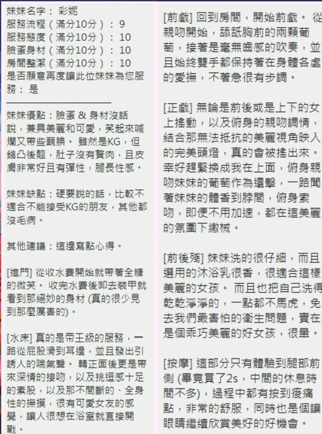 奶砲,按摩,69,共浴,LG(舌吻)依氣氛衛生而定,可親嘴,無套吹,口爆,品鮑,舔蛋,奶推,屁推,顏射,水床浴,變裝(自備免付),絲襪(自備免付),快餐,2S