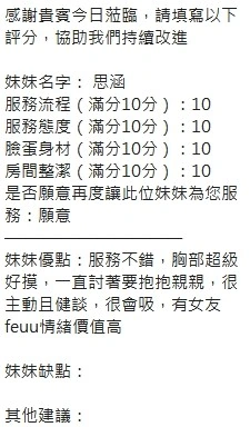 奶砲,按摩,69,共浴,LG(舌吻)依氣氛衛生而定,可親嘴,無套吹,口爆,品鮑,舔蛋,奶推,屁推,顏射,水床浴,變裝(自備免付),絲襪(自備免付),快餐,2S