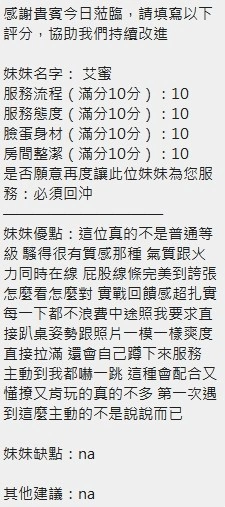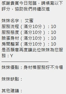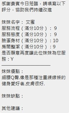 奶砲,按摩,69,共浴,LG(舌吻)依氣氛衛生而定,可親嘴,無套吹,口爆,品鮑,舔蛋,奶推,屁推,水床浴,變裝(自備免付),絲襪(自備免付),中文溝通,快餐,2S