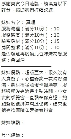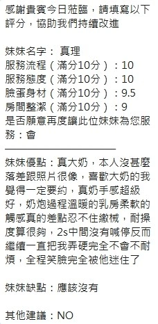 奶砲,按摩,69,共浴,LG(舌吻)依氣氛衛生而定,可親嘴,無套吹,品鮑,舔蛋,奶推,屁推,水床浴,變裝(自備免付),絲襪(自備免付),快餐,2S