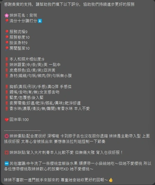 69,共浴,LG(舌吻)依氣氛衛生而定,可親嘴,無套吹,品鮑,舔蛋,冰火,浴中蕭,變裝(自備免付),絲襪(自備免付),中文溝通,英文溝通,快餐,NS