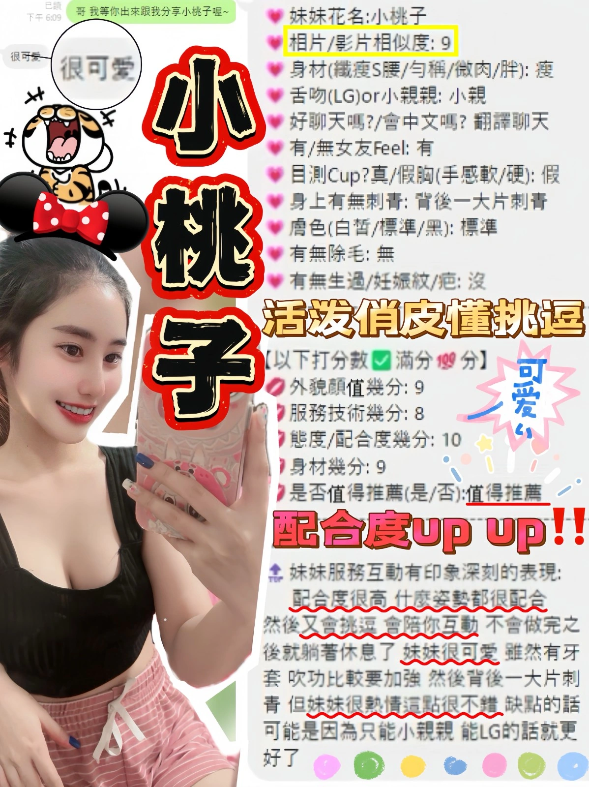 按摩,69,共浴,LG(舌吻)依氣氛衛生而定,可親嘴,無套吹,口爆,吞精,品鮑,舔蛋,冰火,顏射,浴中蕭,絲襪,無套做,攝影,快餐,2S,NS