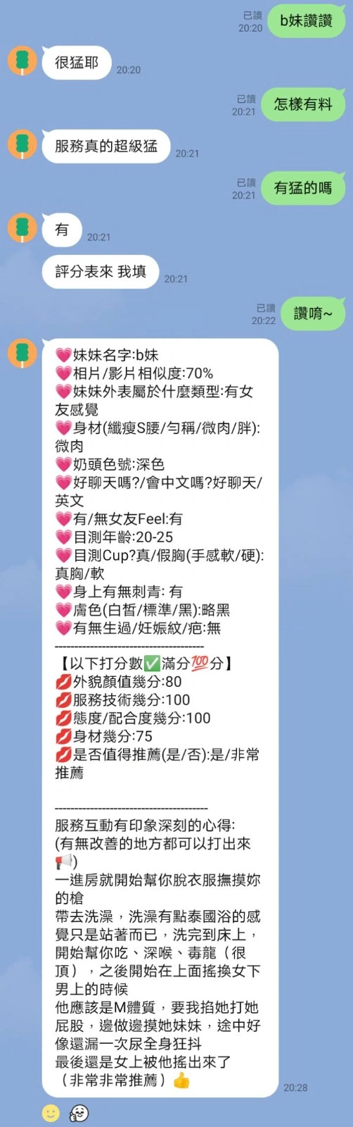 2S+500,口爆+500,顏射+500,自慰秀+500,入珠+500,無套外射+1000,攝影+1000(不露臉),攝影+2000(露臉)