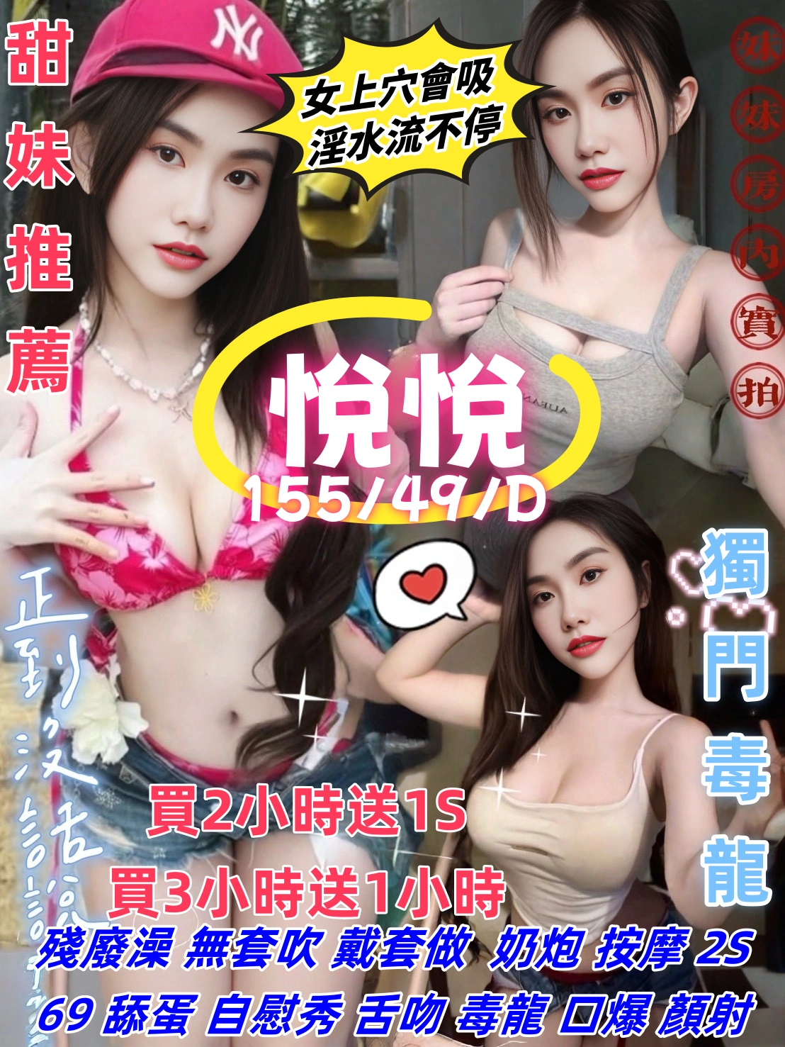 奶砲,毒龍,按摩,69,殘廢澡,LG(舌吻)依氣氛衛生而定,可親嘴,無套吹,口爆,舔蛋,顏射,水床浴,自慰秀,快餐,2S