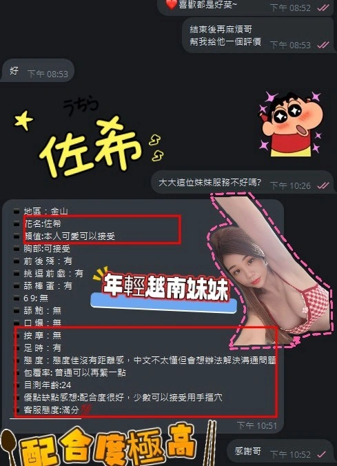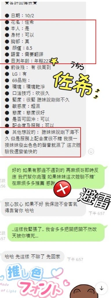 奶砲,69,共浴,LG(舌吻)依氣氛衛生而定,可親嘴,無套吹,品鮑,舔蛋,奶推,變裝(自備免付),絲襪(自備免付),玩具(按摩棒),玩具(跳蛋),情趣用品(客自備),中文溝通,快餐,2S,包夜