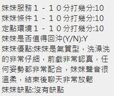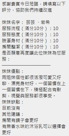 按摩,69,共浴,LG(舌吻)依氣氛衛生而定,可親嘴,無套吹,品鮑,舔蛋,奶推,屁推,變裝(自備免付),絲襪(自備免付),無套做,無套內射,快餐,2S
