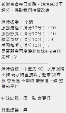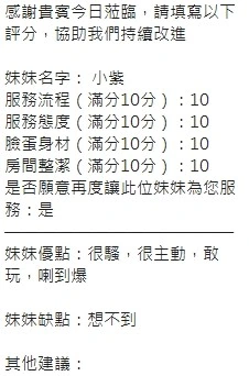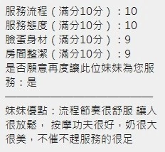 奶砲,毒龍,按摩,69,共浴,LG(舌吻)依氣氛衛生而定,可親嘴,無套吹,口爆,品鮑,奶推,顏射,水床浴,變裝(自備免付),絲襪(自備免付),中文溝通,快餐,2S