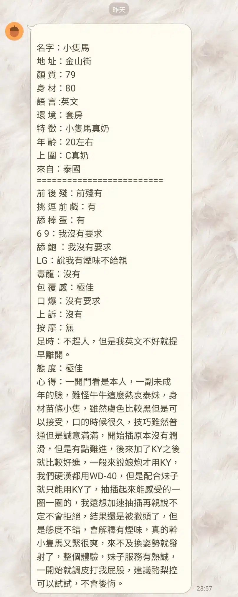 2S+500,口爆+500,顏射+500,自慰秀+500,入珠+500,攝影+1000(不露臉)