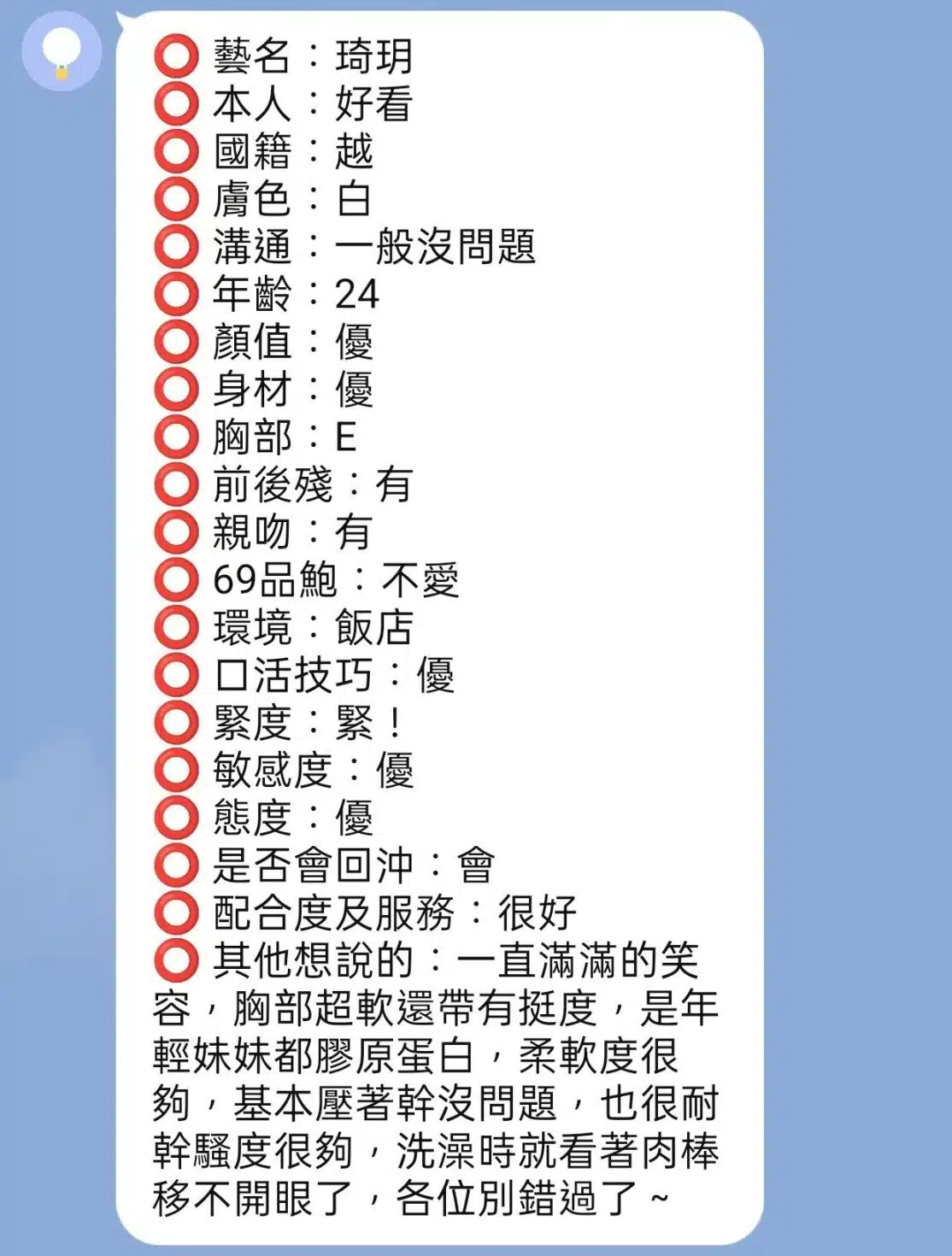 按摩,69,LG(舌吻)依氣氛衛生而定,可親嘴,無套吹,口爆,品鮑,舔蛋,變裝(自備免付),絲襪,快餐,2S
