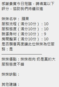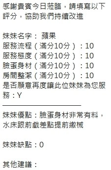 奶砲,按摩,69,共浴,LG(舌吻)依氣氛衛生而定,可親嘴,無套吹,口爆,品鮑,舔蛋,奶推,屁推,顏射,水床浴,變裝(自備免付),絲襪(自備免付),快餐,2S