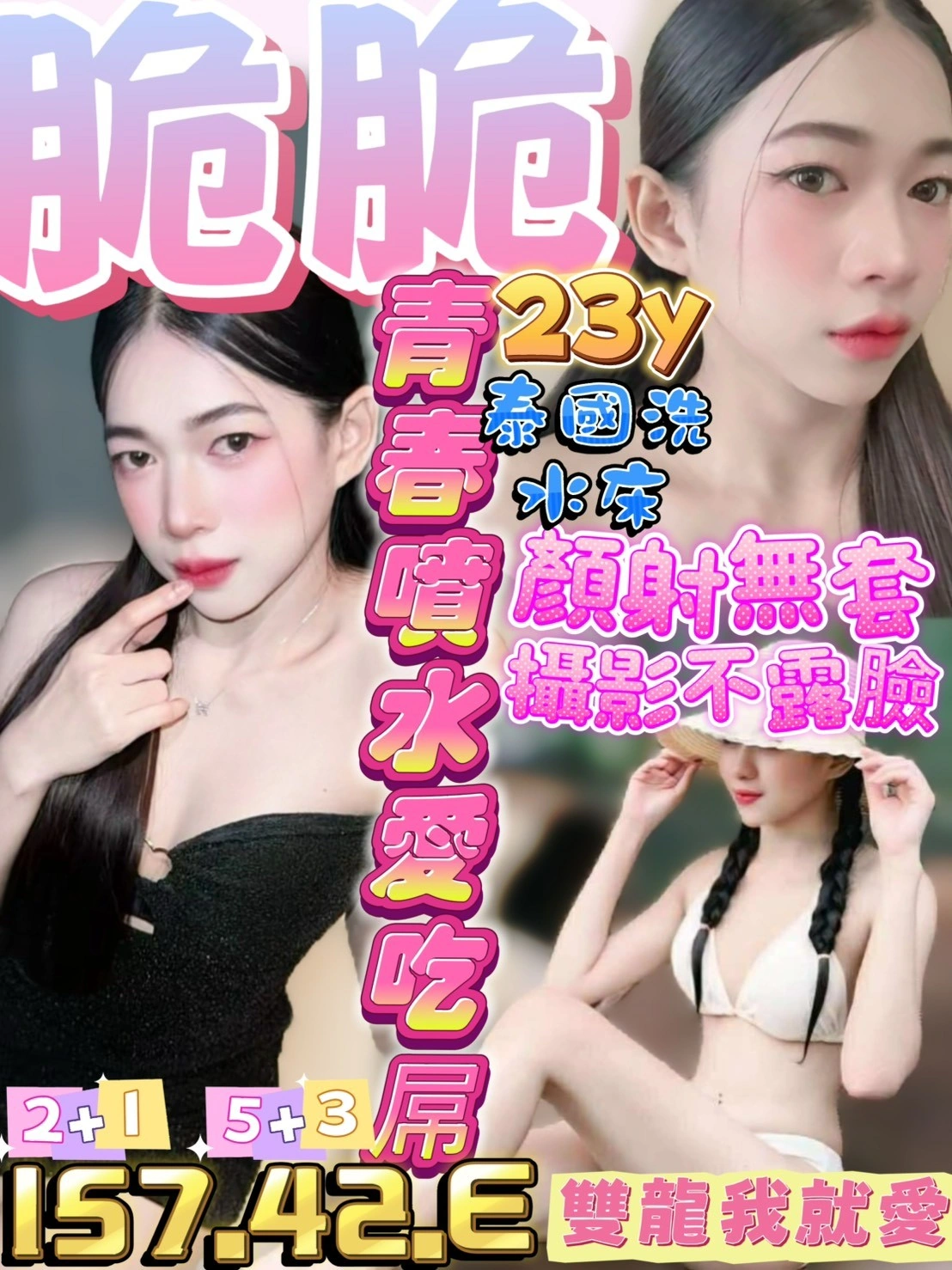 2S+500(60分),口爆+500,顏射+500,無套外射+1000,攝影+1000(不拍臉),水床+500