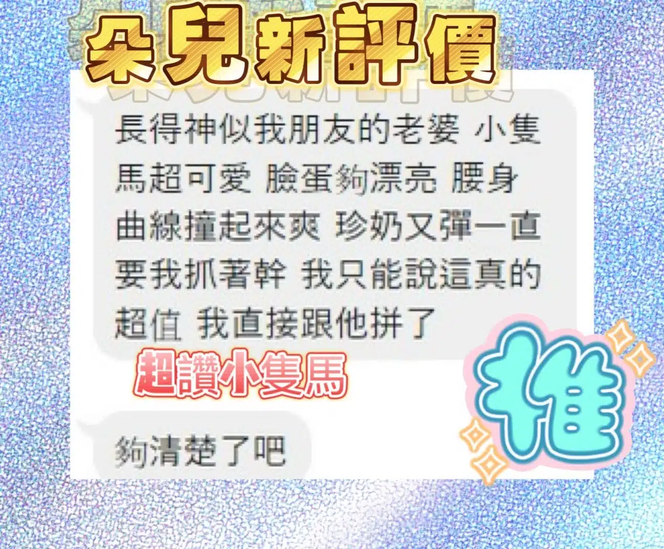 奶砲,按摩,69,共浴,帝王浴,泰國浴,可親嘴,無套吹,足交,品鮑,舔蛋,奶推,屁推,浴中蕭,變裝(自備免付),絲襪(自備免付),無套做,無套內射,快餐,2S