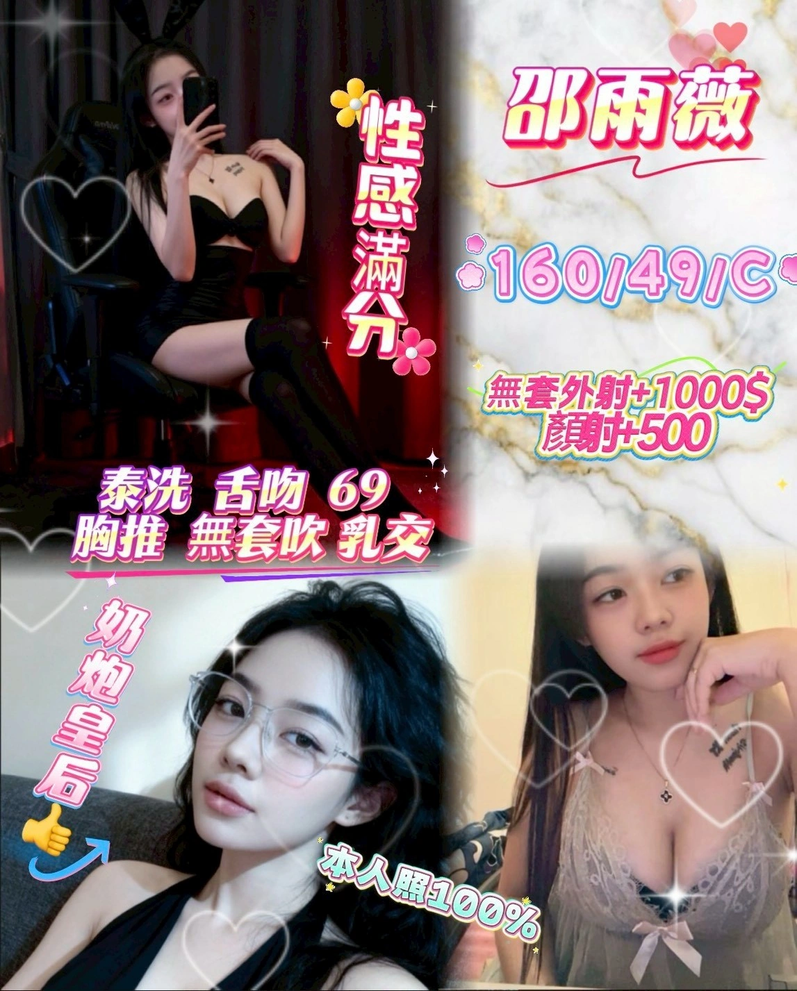 2S+500(60分),顏射+500,無套外射+1000