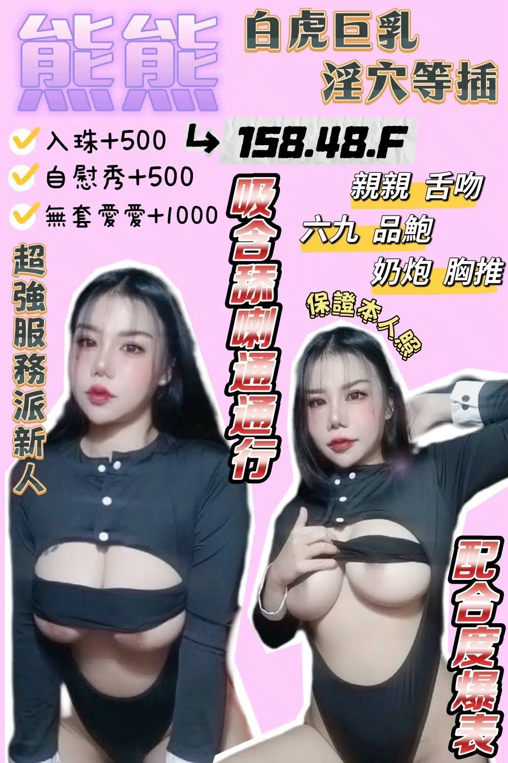 奶砲,按摩,69,共浴,可親嘴,無套吹,舔蛋,浴中蕭,絲襪(自備免付),無套做,無套內射,自慰秀,快餐,2S