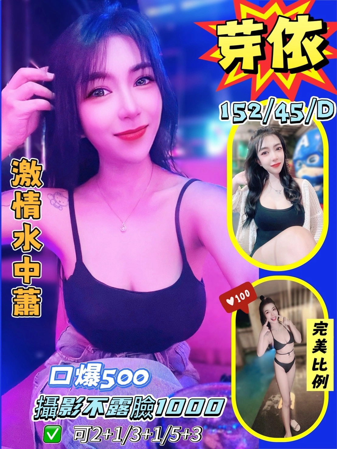奶砲,按摩,69,共浴,可親嘴,無套吹,口爆,品鮑,舔蛋,奶推,屁推,浴中蕭,攝影,快餐,2S