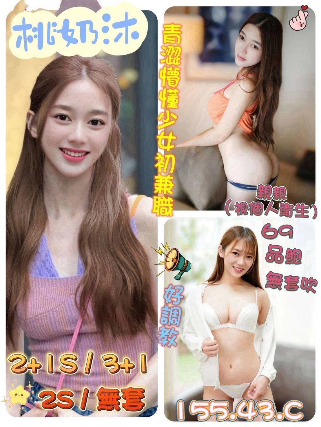 按摩,69,可親嘴,無套吹,品鮑,無套做,無套內射,快餐,2S