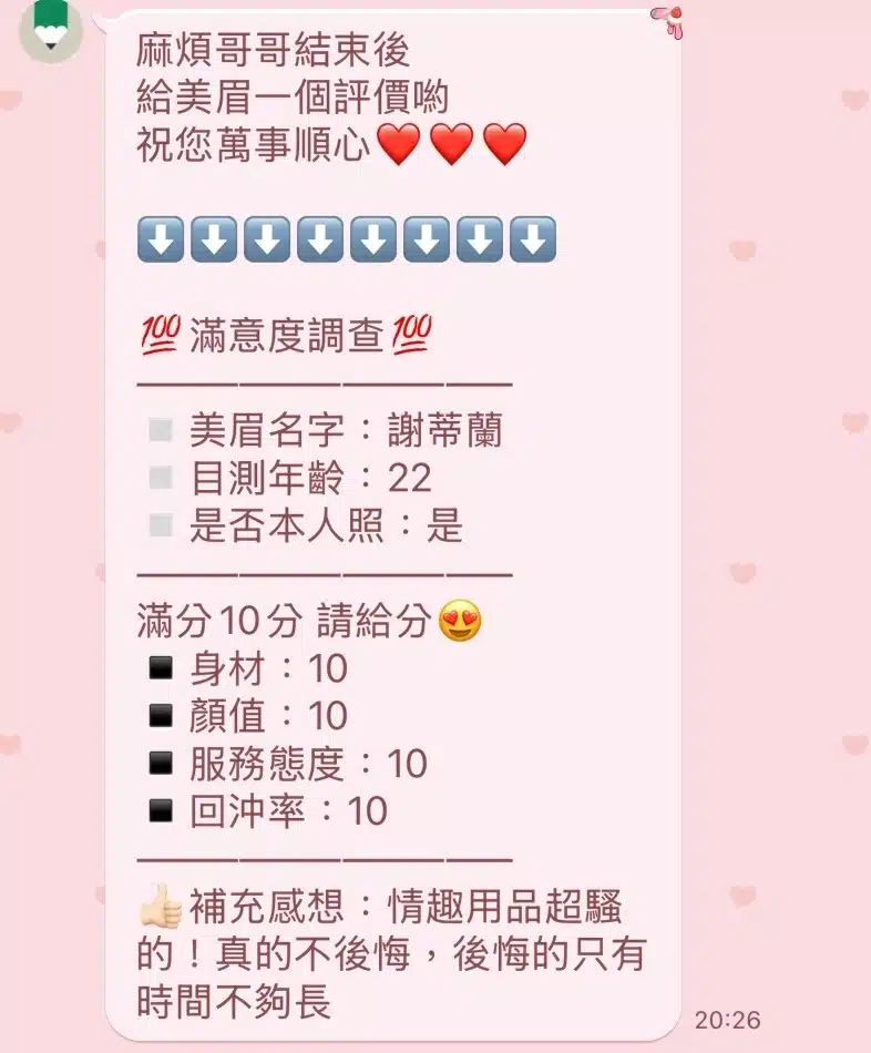 奶砲,按摩,69,LG(舌吻)依氣氛衛生而定,可親嘴,無套吹,口爆,吞精,品鮑,奶推,屁推,冰火,浴中蕭,絲襪,玩具(按摩棒),玩具(跳蛋),自慰秀,快餐,2S