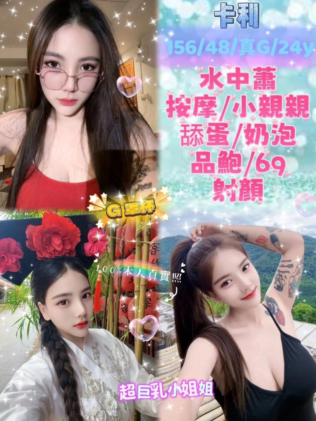 奶砲,按摩,69,可親嘴,無套吹,品鮑,舔蛋,奶推,屁推,顏射,浴中蕭,快餐,2S