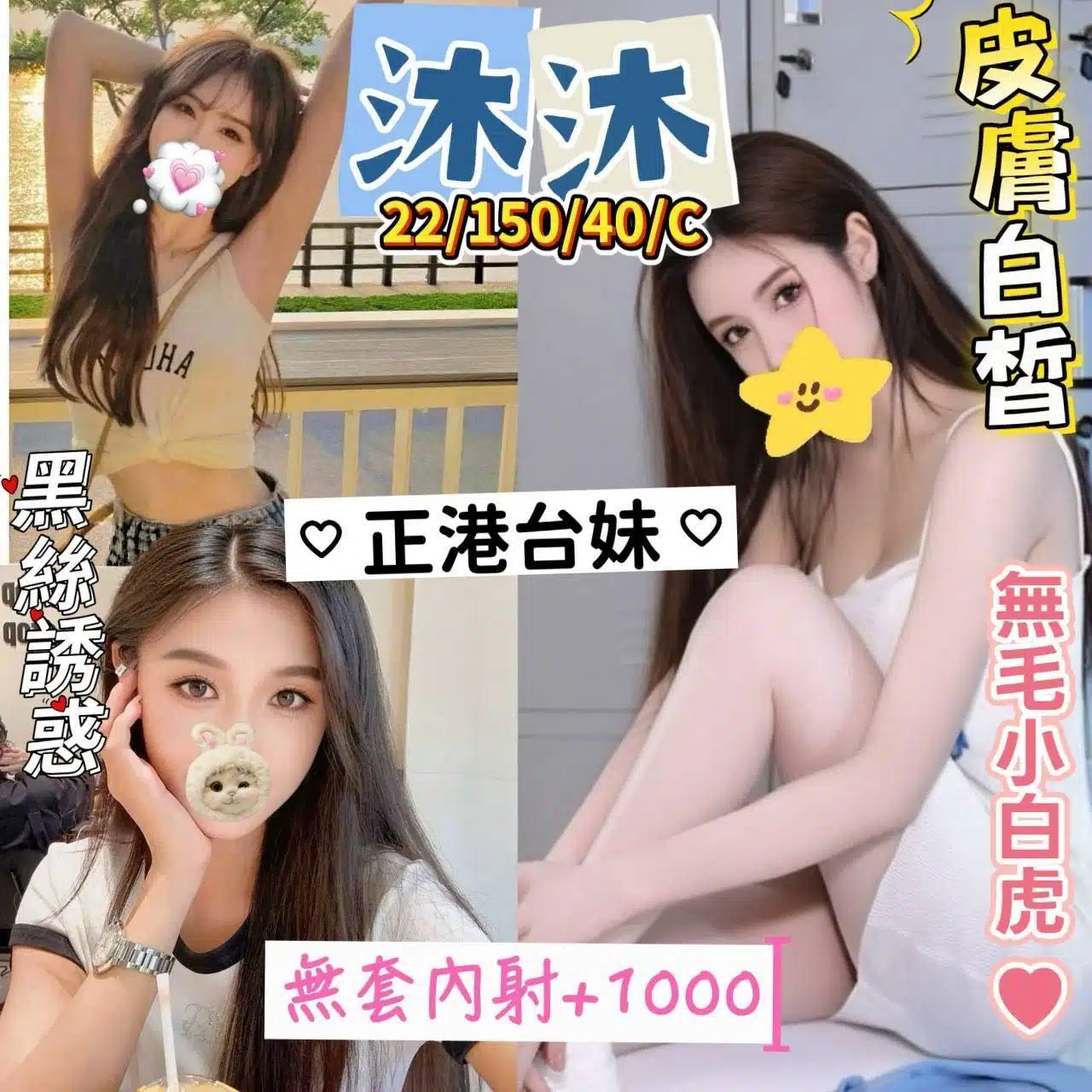 按摩,69,共浴,可親嘴,無套吹,品鮑,舔蛋,絲襪,玩具(按摩棒),玩具(跳蛋),無套做,無套內射,快餐,2S