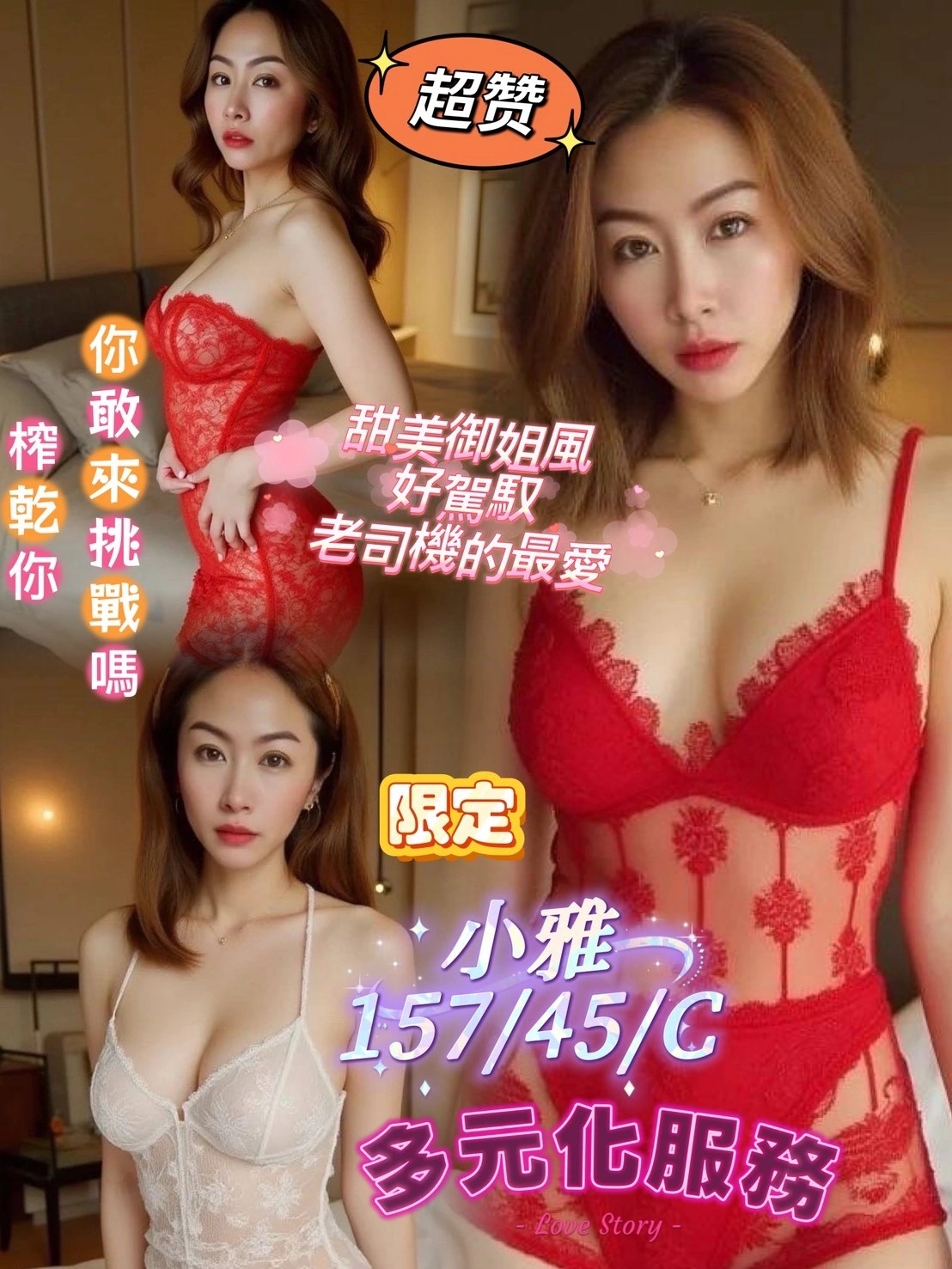奶砲,按摩,69,殘廢澡,可親嘴,無套吹,品鮑,舔蛋,奶推,快餐,2S