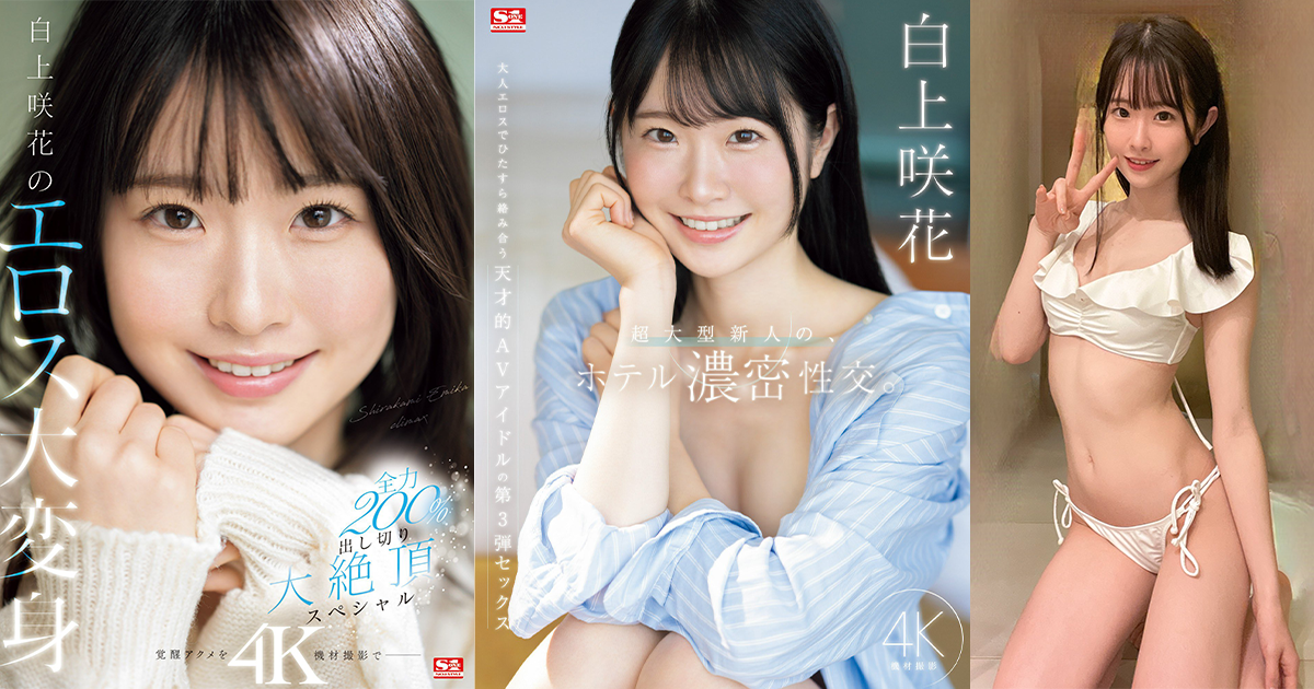 S1片商最新培養的巨星,咲花老師被譽為「天才AV偶像」,她的出道信息已正式公開。擁有一種「無色透明」的清純外型,咲花老師的形象讓人聯想到去年出道的村上悠華。雖然她沒有引人注目的豐滿身材或深刻的角色設定,但她那無瑕的傳統美少女風格本身就具有極大的吸引力,足以讓人感受到一種療癒。S1將白上咲花描述為「2024年的超大型新人」,這顯示了片商對她的高度期待。雖然從目前的樣本中尚難以看出這位20歲新人的特殊之處,但無論是外貌、身材還是細節處理,她在各方面的表現均超過標準水平。她可愛的臉龐和高挑的身材,再加上她的反差萌,使她在眾多新人中脫穎而出。