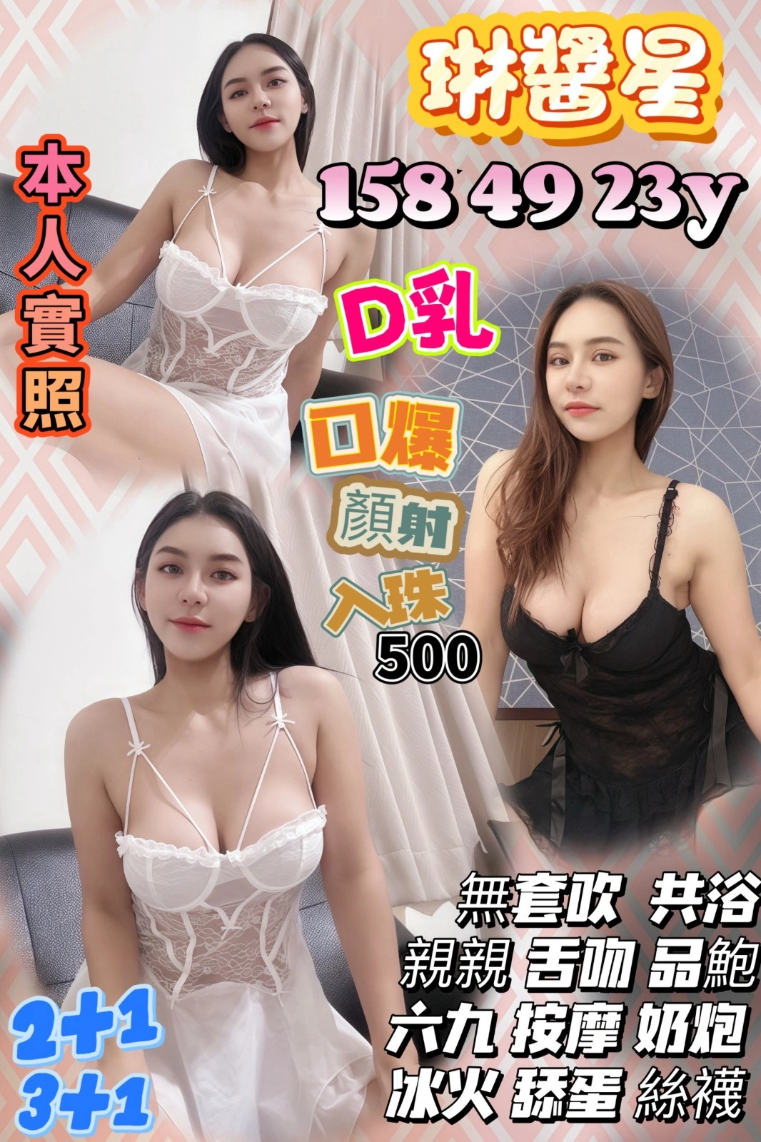 奶砲,按摩,69,共浴,LG(舌吻)依氣氛衛生而定,可親嘴,無套吹,口爆,品鮑,舔蛋,冰火,顏射,變裝,絲襪,快餐,2S