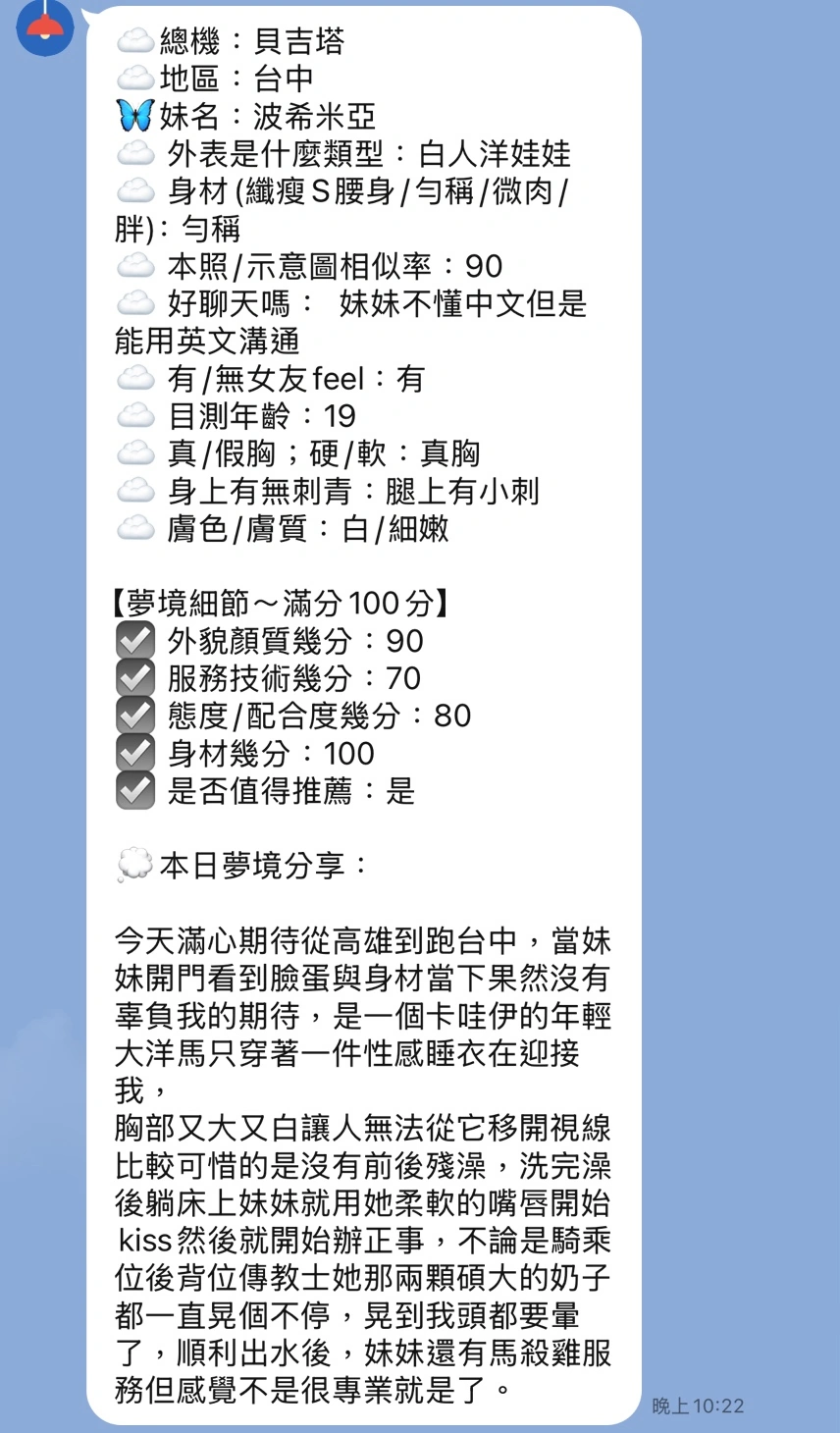 2S+2000(60分),顏射+2000,口爆+2000,吞精+2000,清槍+1000,裸舌毒龍+2000,深喉嚨+2000,自慰秀+1000,艷舞秀+1000,足交+2000,戴套後門+3000,情趣用品+1000(客自備),攝影+3000(不露臉),雙飛搭配🇷🇺卡特琳娜+2000,外約禁止打槍(至少一節):不跑住家限旅館飯店,車資依地區計價