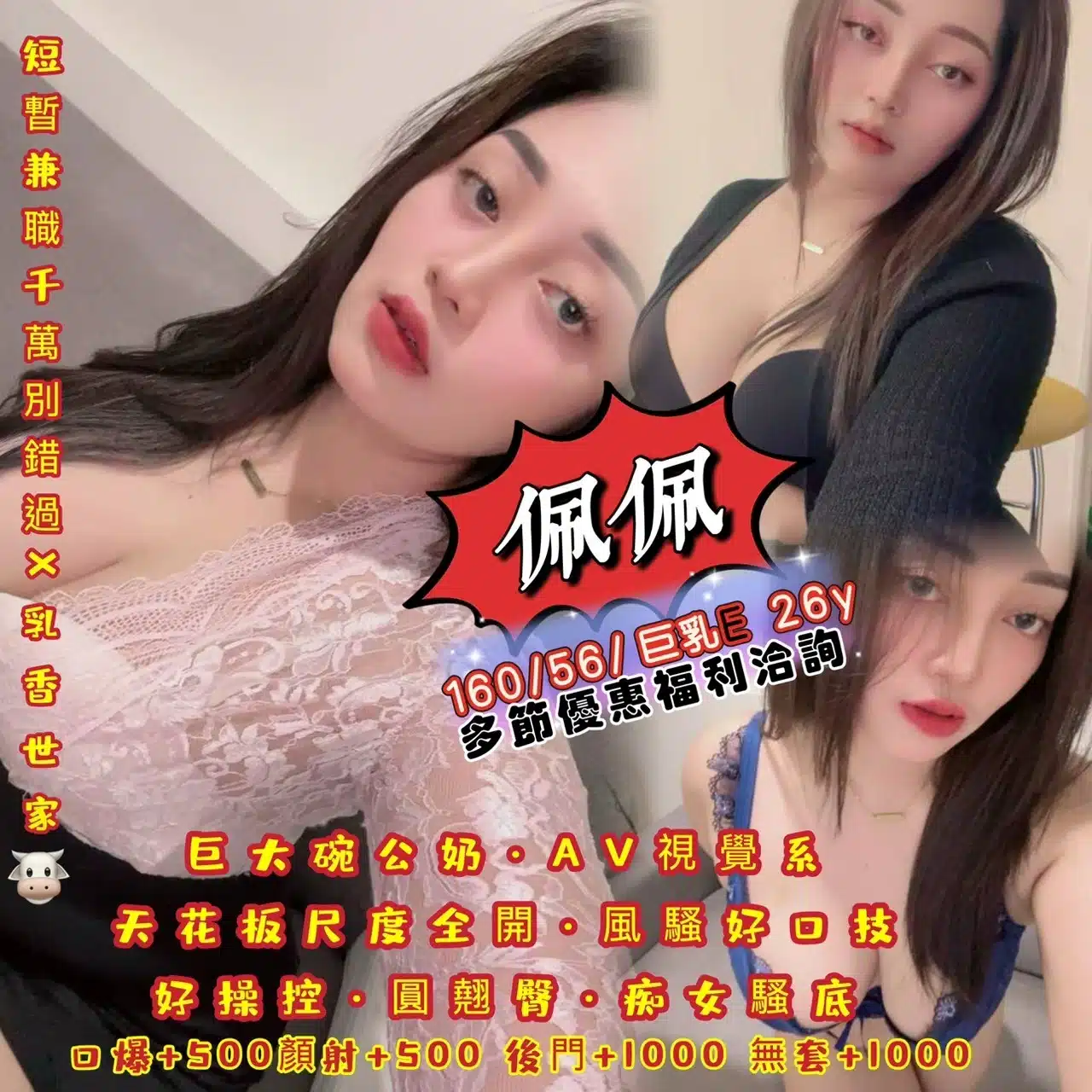 2S+500,口爆+500,顏射+500,自慰秀+500,後門+1000,無套外射+1000
