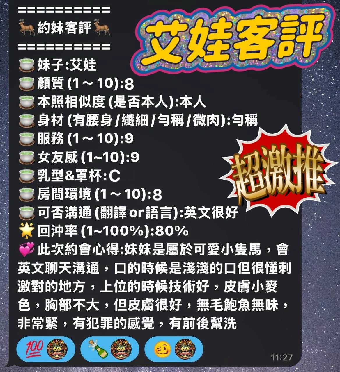 奶砲,按摩,69,共浴,殘廢澡,LG(舌吻)依氣氛衛生而定,可親嘴,無套吹,口爆,吞精,品鮑,舔蛋,輕功,顏射,攝影,中文溝通,快餐,2S,包夜
