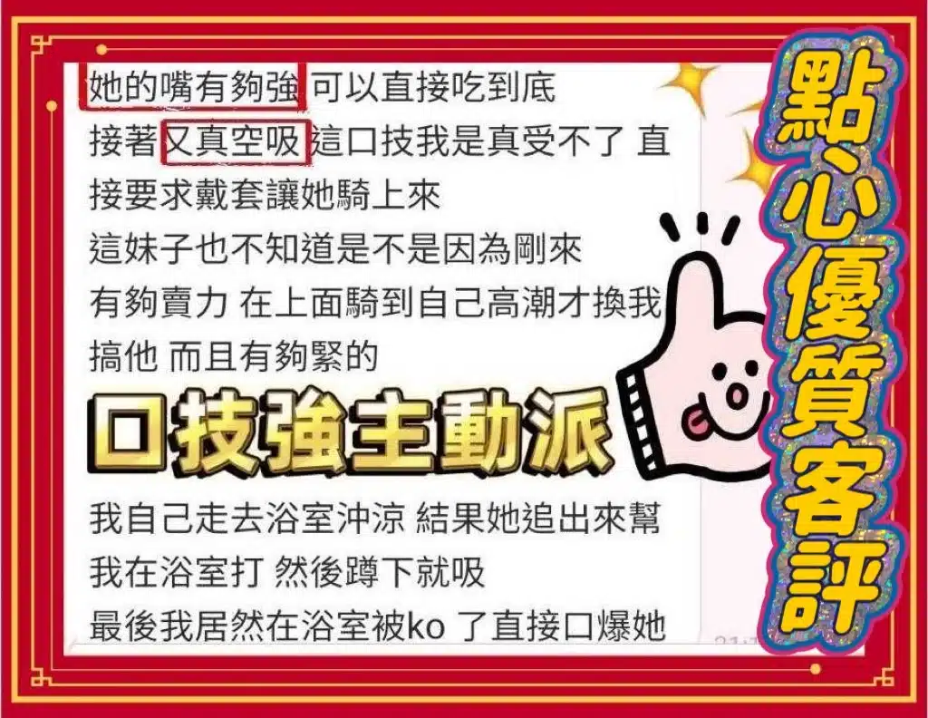 奶砲,按摩,69,共浴,殘廢澡,LG(舌吻)依氣氛衛生而定,可親嘴,無套吹,口爆,品鮑,舔蛋,輕功,快餐,2S,包夜