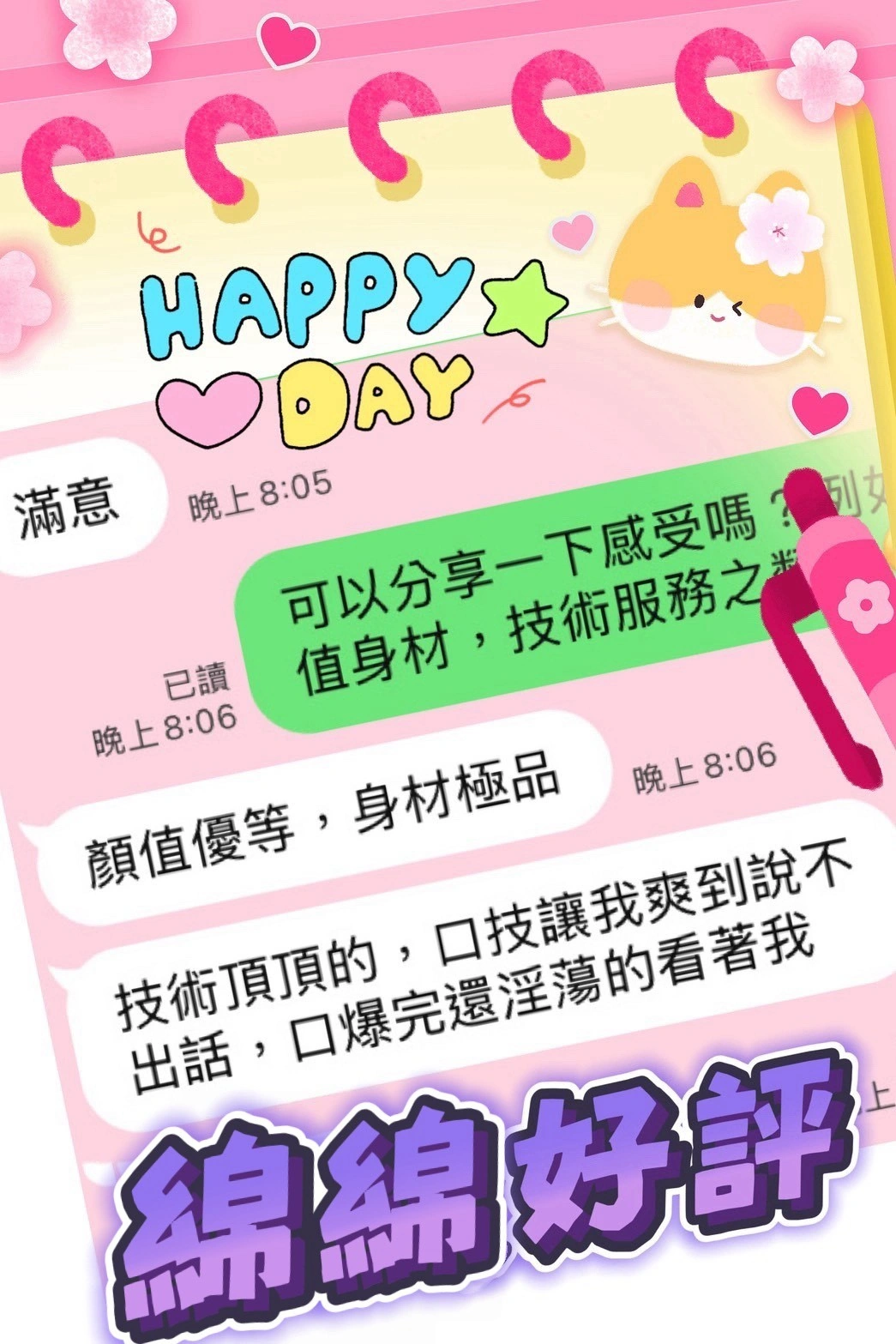 奶砲,按摩,69,共浴,殘廢澡,LG(舌吻)依氣氛衛生而定,可親嘴,無套吹,口爆,品鮑,舔蛋,輕功,變裝(自備免付),絲襪(自備免付),快餐,2S,包夜