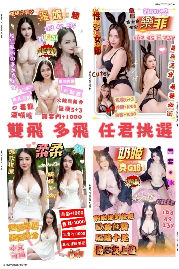 奶砲,毒龍,按摩,69,共浴,LG(舌吻)依氣氛衛生而定,可親嘴,無套吹,口爆,吞精,品鮑,舔蛋,奶推,屁推,冰火,顏射,深喉嚨,艷舞秀,變裝(自備免付),絲襪(自備免付),玩具(按摩棒),玩具(跳蛋),情趣用品(客自備),無套做,無套內射,自慰秀,攝影,快餐,2S,包夜