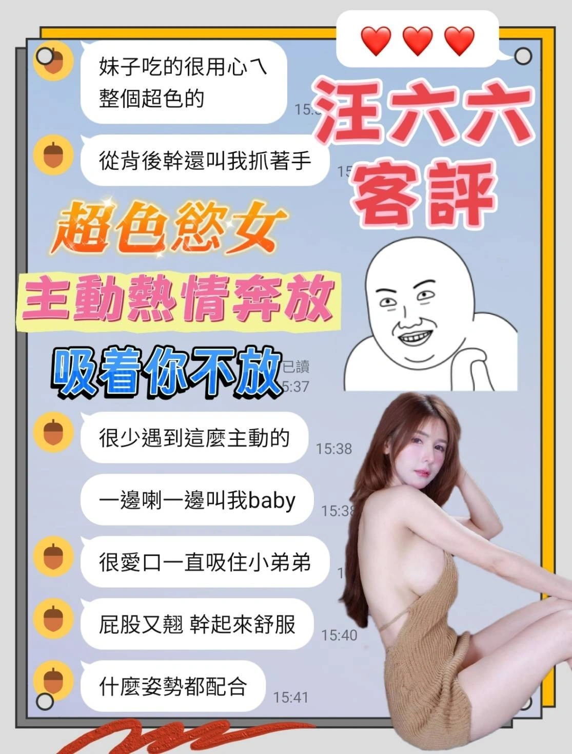 奶砲,按摩,69,共浴,LG(舌吻)依氣氛衛生而定,可親嘴,無套吹,品鮑,舔蛋,輕功,絲襪,無套做,無套內射,快餐,2S
