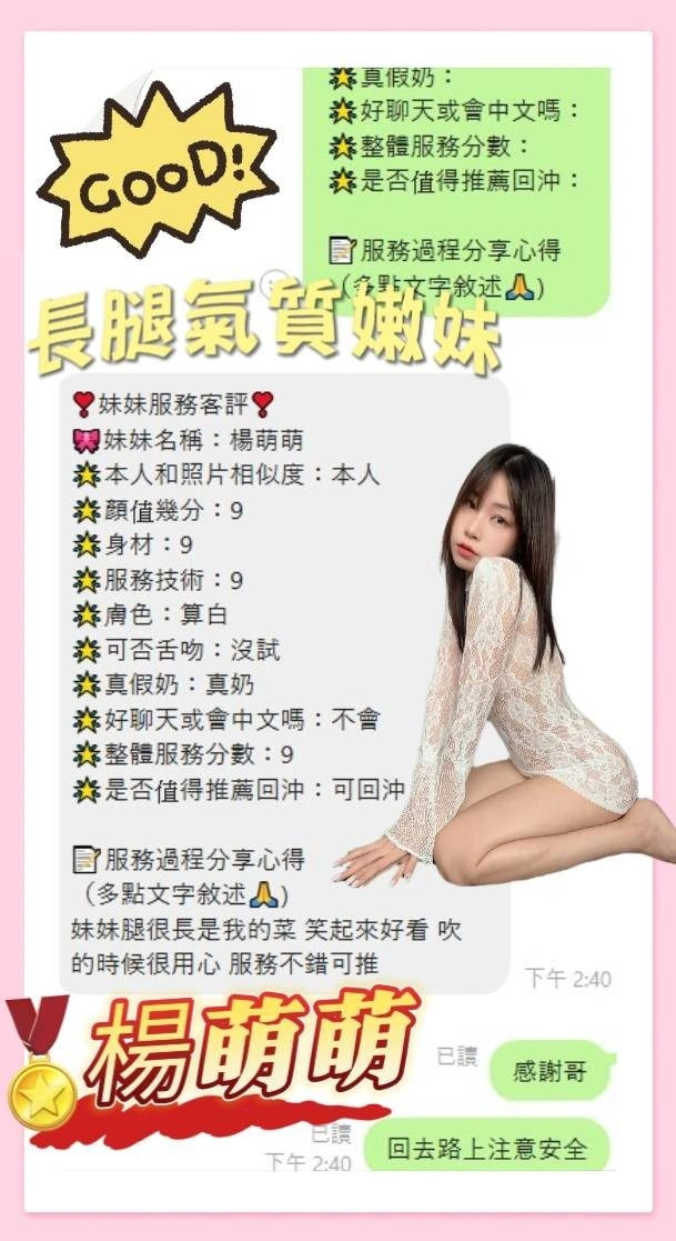 奶砲,按摩,69,共浴,LG(舌吻)依氣氛衛生而定,可親嘴,無套吹,口爆,品鮑,舔蛋,輕功,絲襪,快餐,2S