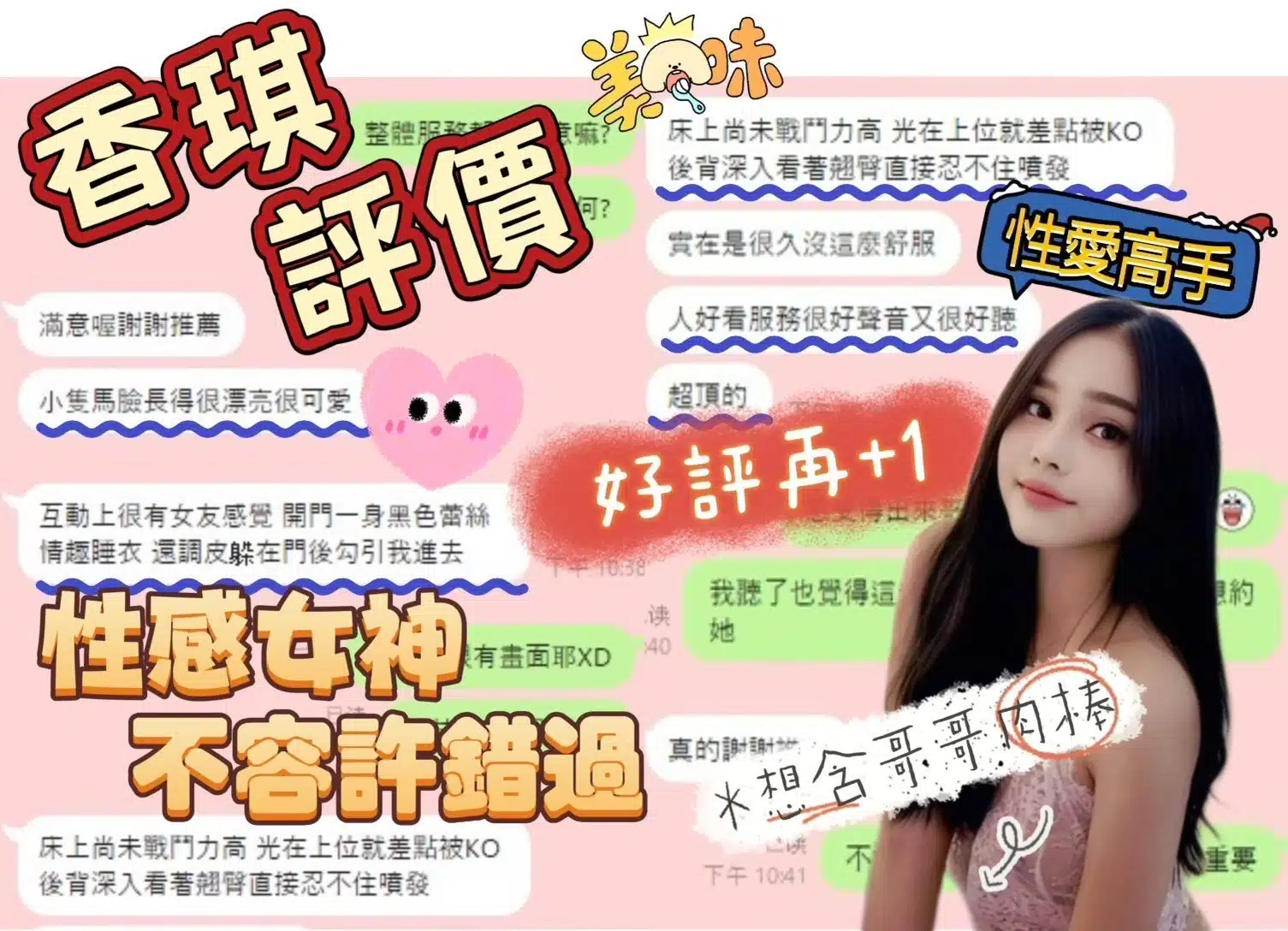 奶砲,按摩,69,共浴,LG(舌吻)依氣氛衛生而定,可親嘴,無套吹,口爆,品鮑,舔蛋,奶推,屁推,浴中蕭,深喉嚨,變裝(自備免付),絲襪(自備免付),快餐,2S