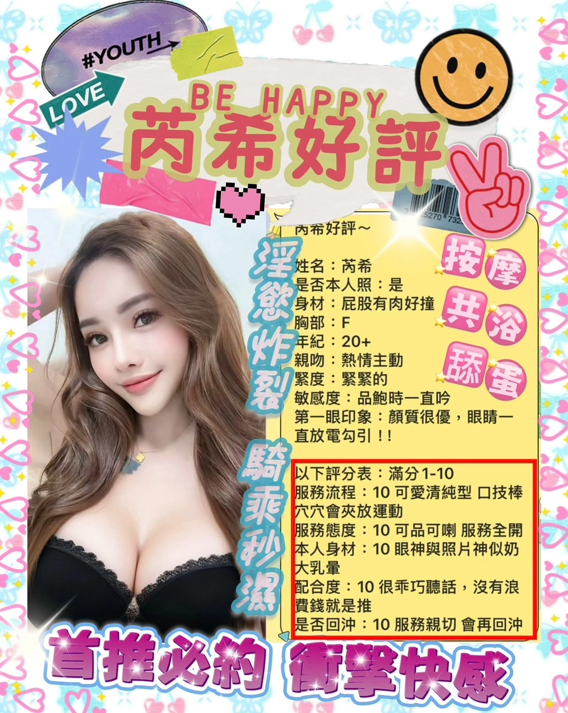 奶砲,按摩,69,共浴,LG(舌吻)依氣氛衛生而定,可親嘴,無套吹,口爆,品鮑,奶推,屁推,浴中蕭,變裝(自備免付),絲襪(自備免付),快餐,2S