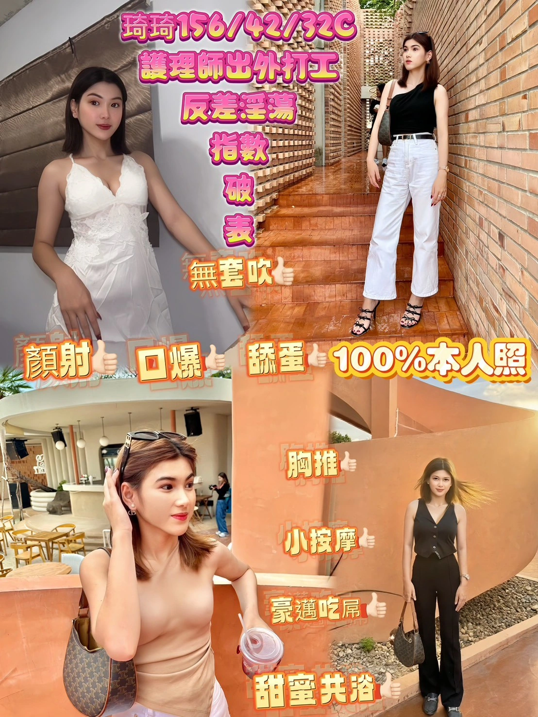 奶砲,按摩,69,共浴,可親嘴,無套吹,口爆,品鮑,舔蛋,奶推,屁推,顏射,絲襪,無套做,快餐,2S