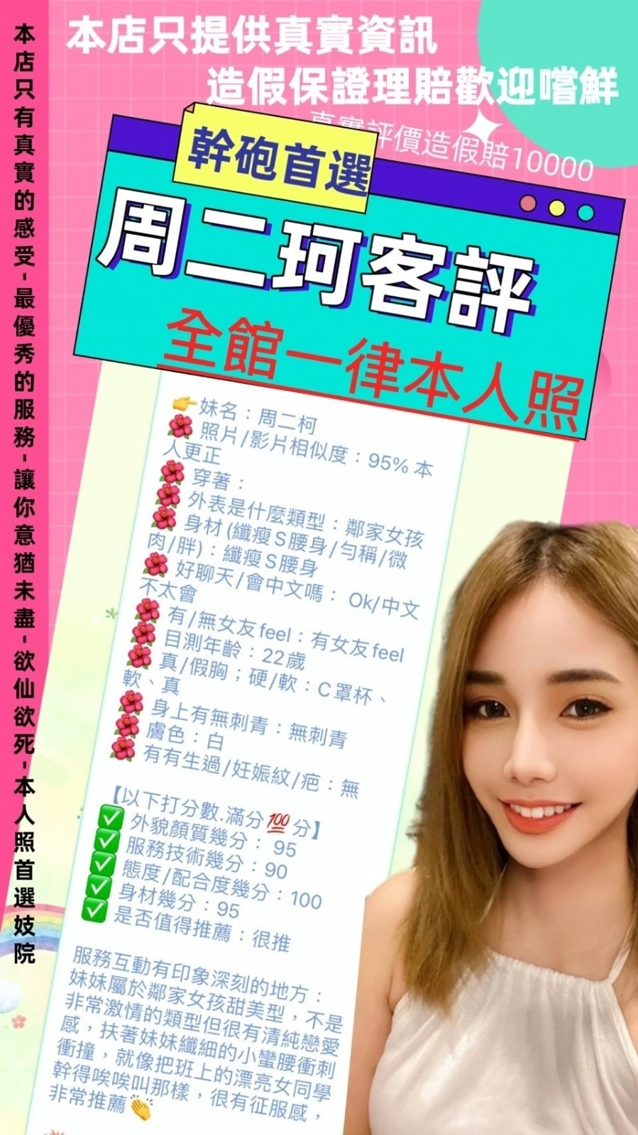 奶砲,按摩,69,共浴,LG(舌吻)依氣氛衛生而定,可親嘴,無套吹,口爆,品鮑,舔蛋,奶推,屁推,絲襪,英文溝通,快餐,2S