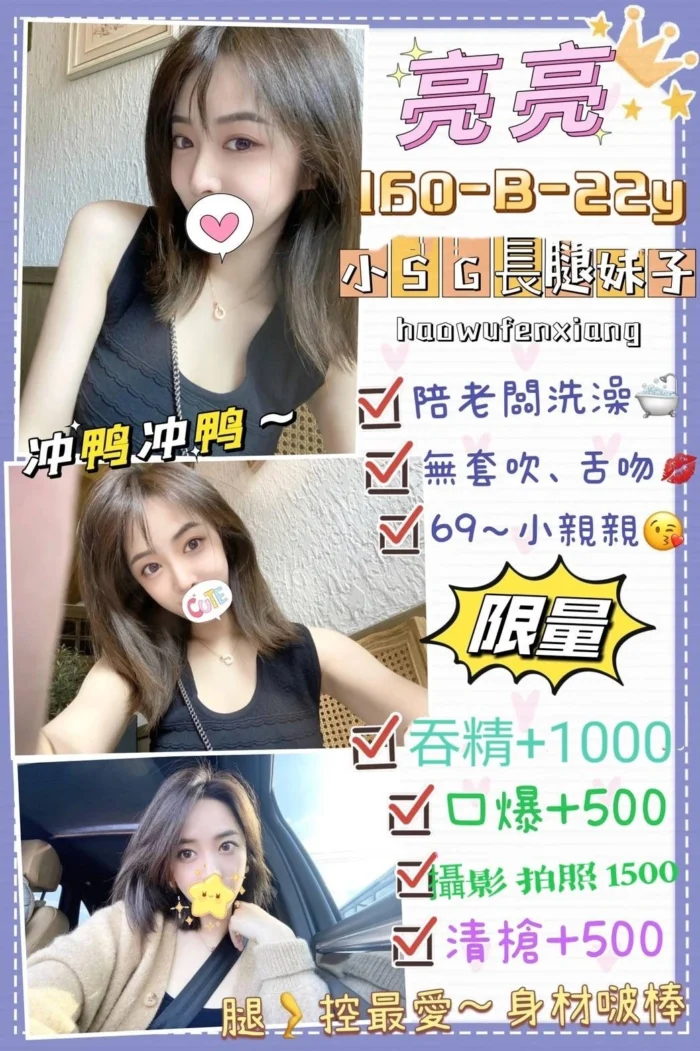 2S+500(60分),口爆+500,吞精+1000,清槍+500,攝影+1500(不露臉)