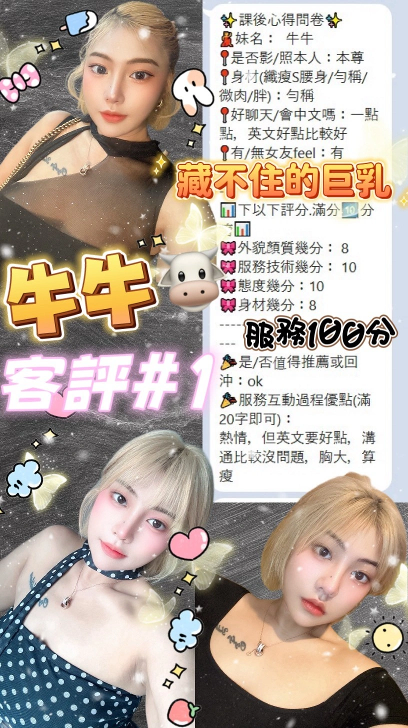 奶砲,毒龍,按摩,69,共浴,LG(舌吻)依氣氛衛生而定,可親嘴,無套吹,口爆,吞精,品鮑,舔蛋,奶推,屁推,顏射,艷舞秀,絲襪(自備免付),玩具(按摩棒),玩具(跳蛋),情趣用品(客自備),無套做,無套內射,自慰秀,中文溝通,英文溝通,快餐,2S