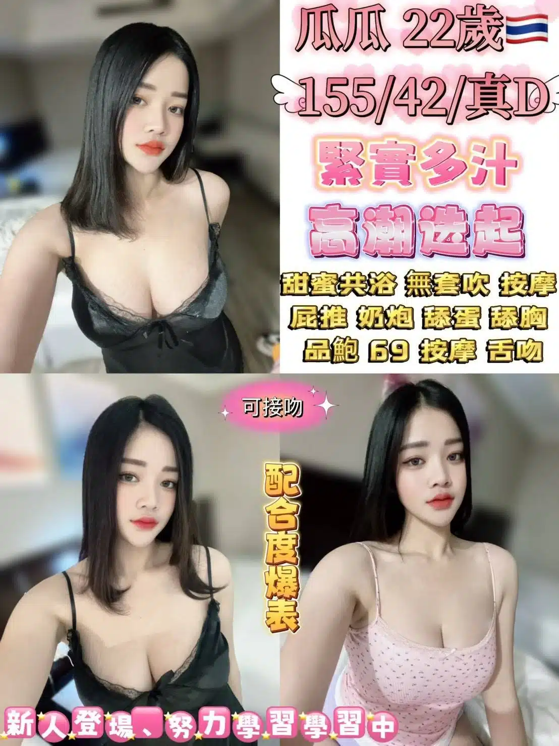 奶砲,按摩,69,共浴,LG(舌吻)依氣氛衛生而定,可親嘴,無套吹,品鮑,舔蛋,屁推,快餐,2S