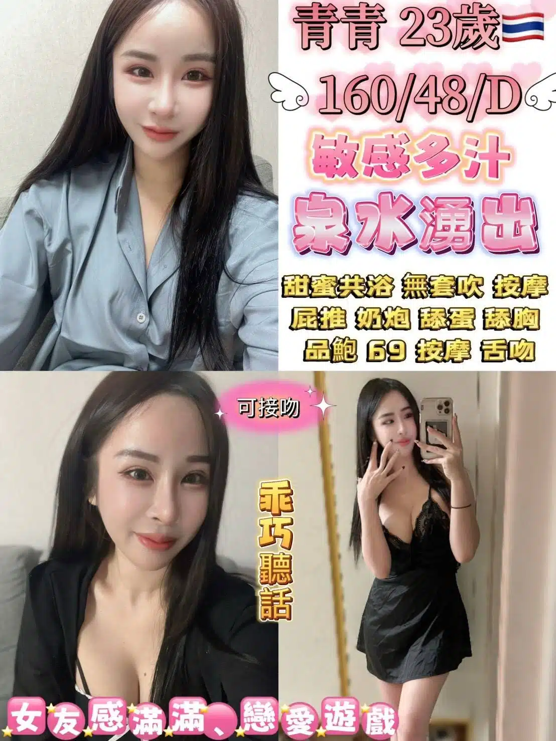奶砲,按摩,69,共浴,LG(舌吻)依氣氛衛生而定,可親嘴,無套吹,品鮑,舔蛋,屁推,快餐,2S