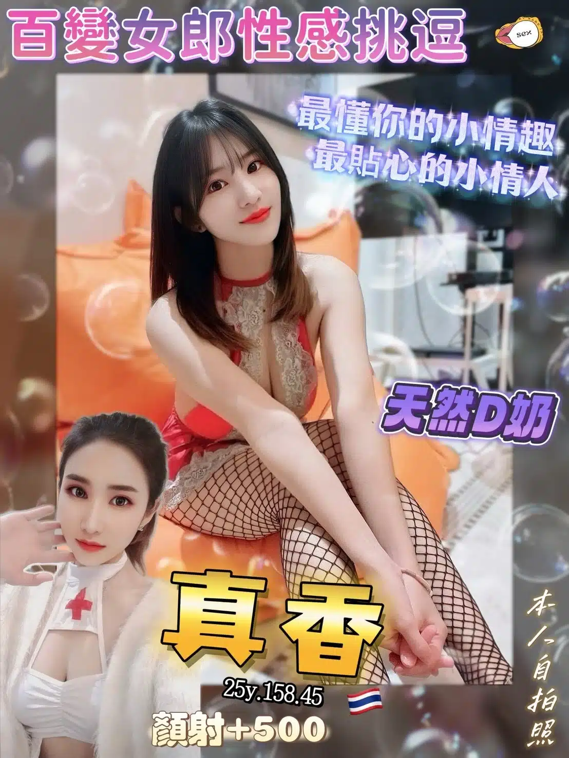 奶砲,按摩,69,共浴,可親嘴,無套吹,品鮑,奶推,屁推,冰火,顏射,浴中蕭,絲襪(自備免付),快餐,2S