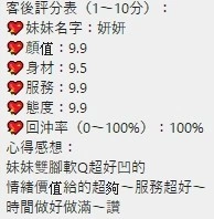 奶砲,毒龍,按摩,69,共浴,LG(舌吻)依氣氛衛生而定,可親嘴,無套吹,口爆,足交,品鮑,舔蛋,冰火,顏射,浴中蕭,深喉嚨,變裝,絲襪,玩具(按摩棒),玩具(跳蛋),無套做,自慰秀,快餐,2S