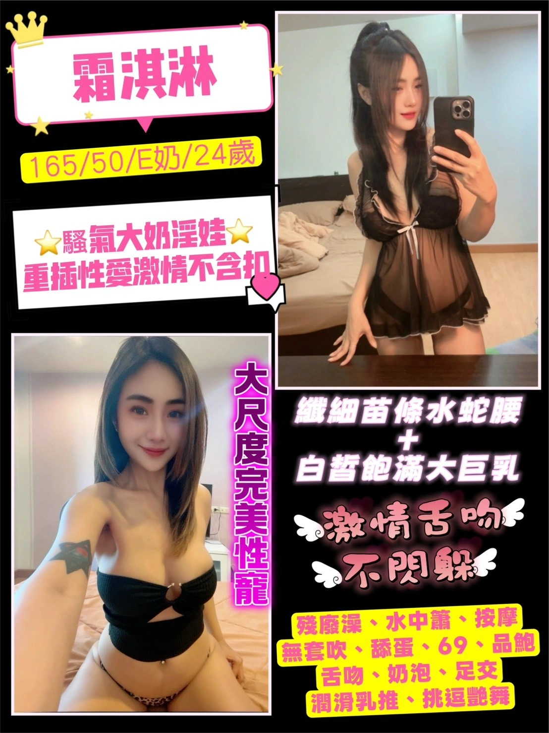 奶砲,按摩,69,共浴,LG(舌吻)依氣氛衛生而定,可親嘴,無套吹,足交,品鮑,舔蛋,漫遊,奶推,顏射,浴中蕭,深喉嚨,變裝(自備免付),絲襪,英文溝通,快餐,2S