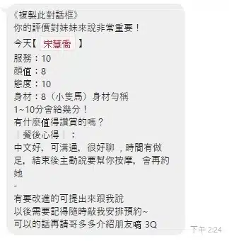 奶砲,按摩,69,共浴,LG(舌吻)依氣氛衛生而定,可親嘴,無套吹,品鮑,舔蛋,絲襪,中文溝通,快餐,2S