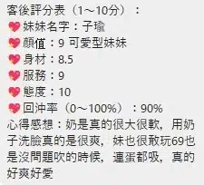 奶砲,按摩,陪洗,共浴,可親嘴,無套吹,品鮑,舔蛋,過水,奶推,顏射,快餐,2S