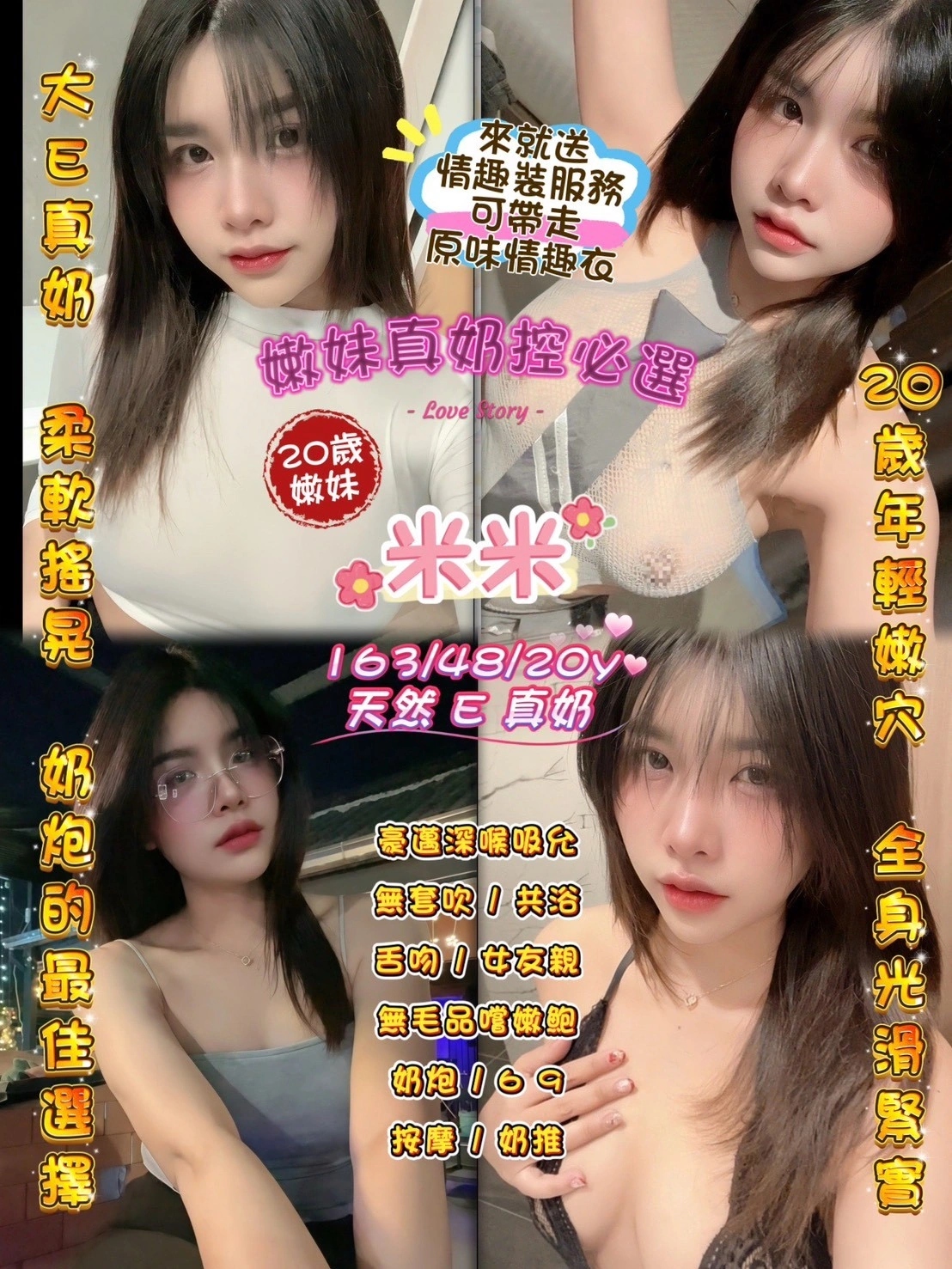 奶砲,按摩,69,共浴,LG(舌吻)依氣氛衛生而定,可親嘴,無套吹,品鮑,奶推,深喉嚨,快餐,2S